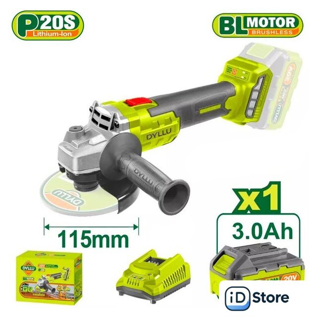 Комплект поставки | - Угловая шлифмашина - 1 шт.- Боковая рукоятка - 1 шт.- Фланцевый ключ - 1 шт.- Аккумулятор DTLBP530 3,0 Ач - 1 шт.- Зарядное устройство DTFCP518 - 1 шт.- Отрезной диск - 10 шт.- Коробка |