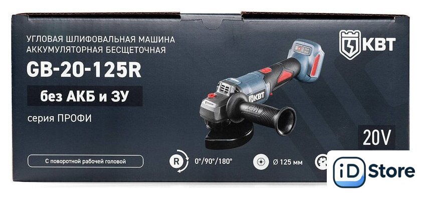 | Комплект поставки | - угловая аккумуляторная шлифмашина GB-20–125R;, - ключ специальный;, - защитный кожух;, - фирменная обрезиненная рукоятка;, - паспорт;, - картонная коробка |