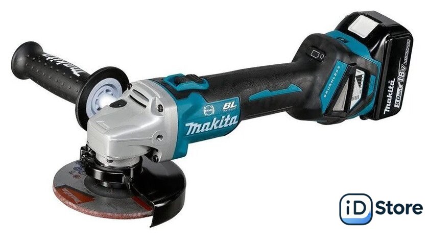 Комплект поставки | - Угловая шлифмашина;- 1 аккумулятор 18V 5,0 Ач;- Зарядное устройство DC18RC;- Металлический защитный кожух;- Пластиковый защитный кожух;- Боковая рукоятка;- Зажимная гайка;- Инструкция;- Кейс MakPac 3. |