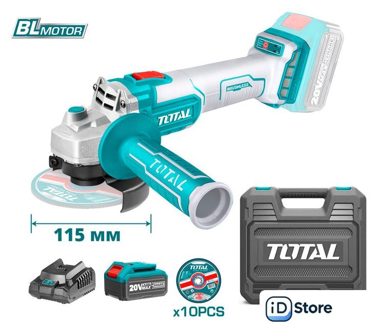 Комплект поставки | Угловая шлифмашина - 1 шт.Боковая рукоятка - 1 шт.Фланцевый ключ - 1 шт.Аккумулятор TFBLI2002 4,0 Ач - 1 шт.Зарядное устройство TFCLI2001E - 1 шт.Отрезной диск - 10 шт.ИнструкцияКейс |