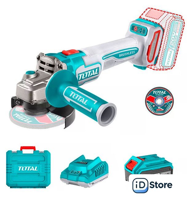 Комплект поставки | - Угловая шлифмашина - 1 шт.- Боковая рукоятка - 1 шт.- Фланцевый ключ - 1 шт.- Аккумулятор TFBLI2002 4,0 Ач - 1 шт.- Зарядное устройство TFCLI2001 - 1 шт.- Отрезной диск - 10 шт.- Инструкция- Кейс |