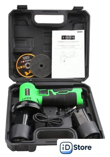| Комплект поставки | углошлифмашина аккумуляторная, зарядное устройство, аккумулятор 3.0 Ач (2 шт.), шлифовальный диск (2 шт.), руководство по эксплуатации, шестигранный ключ, инструкция, кейс |