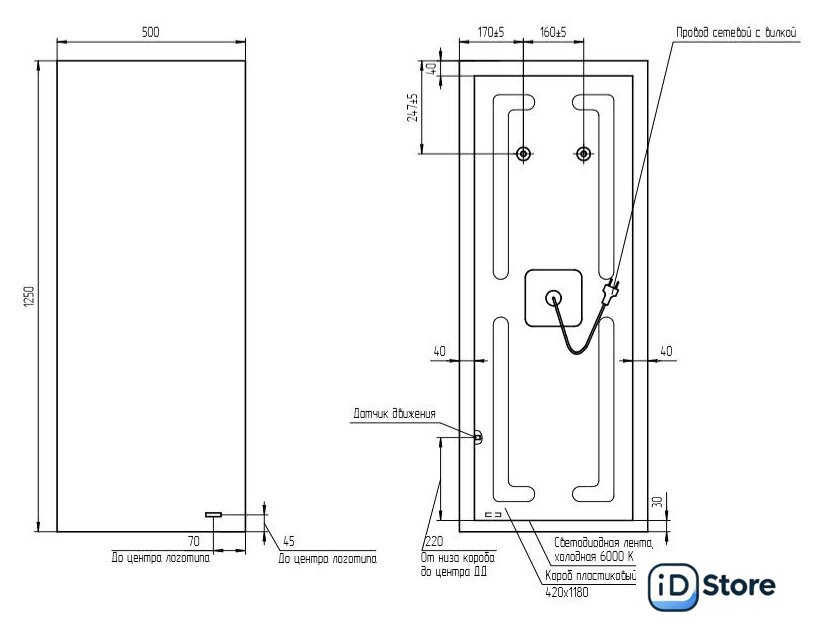 зеркало, подвесная установка