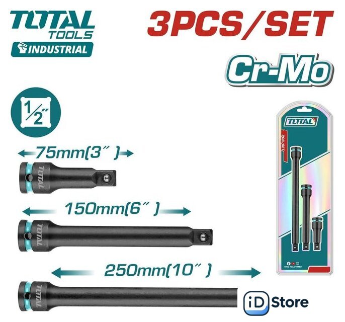 | Комплектация | Ударный удлинитель 3" (75 мм) - 1шт.Ударный удлинитель 6" (150 мм) - 1шт.Ударный удлинитель 10" (250 мм) - 1шт.Блистер |
