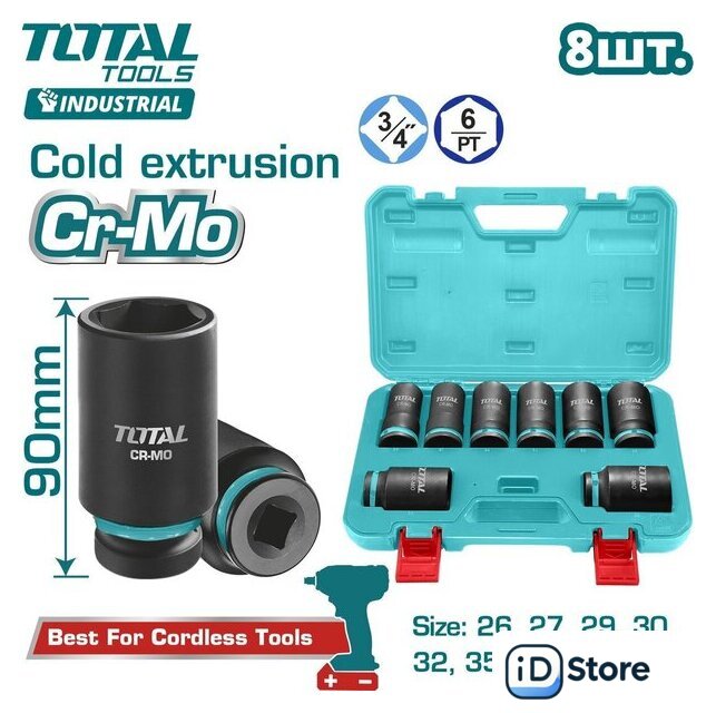 | Комплектация | Торцевая головка 3/4'' (26, 27, 29, 30, 32, 35, 36, 38 мм) - 8 шт.Пластиковый кейс - 1 шт. |