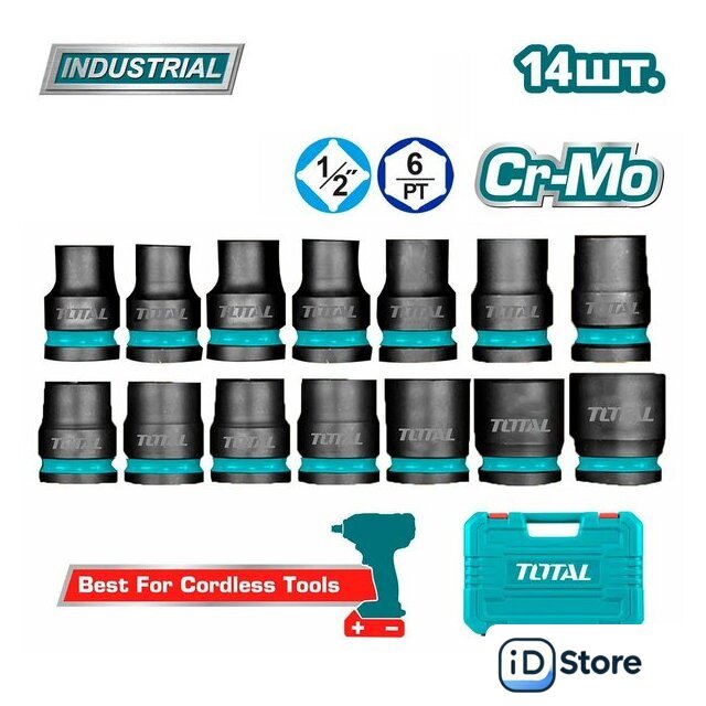 | Комплектация | 14 торцевых головок (10, 11, 12, 13, 14, 15, 16, 17, 18, 19, 21, 22, 24, 27 мм), пластиковый кейс |