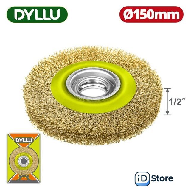 щетка для электроинструмента, 1 шт, дисковая, ворс: гофра (металл), обрабатываемый материал: дерево/металл, диаметр 150 мм, посадочный диаметр 22.2 мм