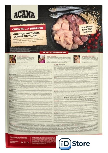| Ингредиенты | НОВЫЙ СОСТАВ:Свежее мясо курицы (18%), дегидрированное мясо курицы (16%), дегидрированная сельдь (15%), цельный овес, цельный горох, куриный жир (5%), полевой мискантус, цельная зеленая чечевица, свежее мясо индейки (4%), сырая цельная сельдь (4%), цельный нут, цельная красная чечевица, чечевица, сырой кролик (1%), свежие печень и сердце курицы (1%), сырая печень индейки, сушеные водоросли, свежая мускатная тыква, свежая столовая тыква, свежая цельная клюква, свежая цельная черника.СТАРЫЙ СОСТАВ:Свежее мясо курицы (16%), дегидрированное мясокурицы (16%), дегидрированнаясельдь (16%), цельный овес, цельный горох, куриный жир (5%), полевой мискантус, цельная зеленая чечевица, свежее мясо индейки (4%), сырая цельная сельдь (4%), цельный нут, цельная красная чечевица, чечевица, сырой кролик (1%), свежие легкие и сердце курицы (1%), свежие легкие и сердце индейки, куриный хрящ (1%), сушеные водоросли, свежая мускатная тыква, свежая столовая тыква, свежая цельная клюква, свежая цельная черника. |