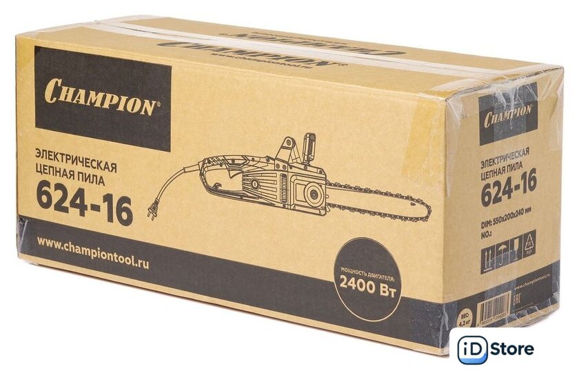 | Комплект поставки | - Электрическая цепная пила CHAMPION 624-16- Пильная шина- Пильная цепь- Руководство по эксплуатации |
