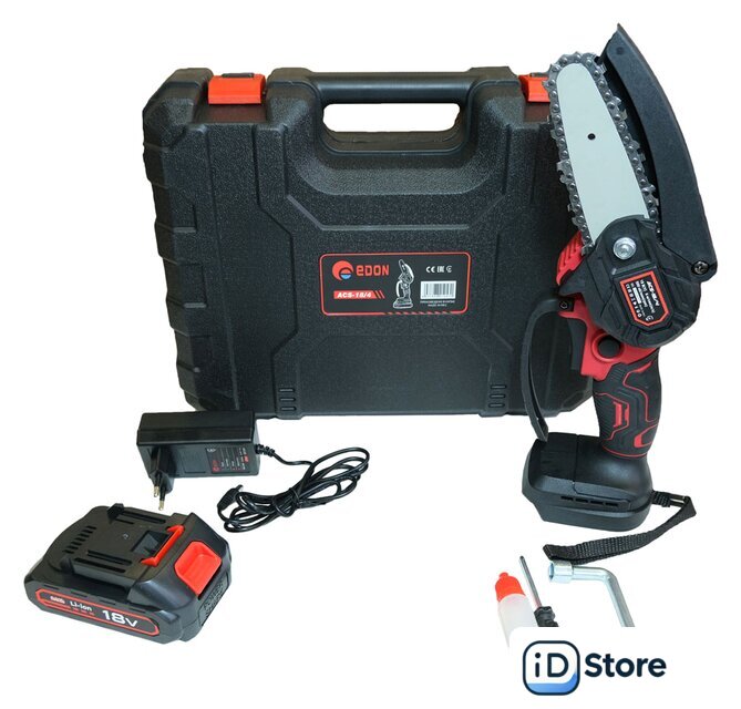 | Комплект поставки | Пила мини-цепная аккумуляторная - 1 шт.Ключ накидной - 1 шт.Отвертка - 1 шт.Пильная шина - 1 шт.Цепь 4" - 1 штСмазка для цепи - 1 шт.Аккумулятор - 1 шт.Зарядное устройство - 1 шт.Руководство по эксплуатации - 1 шт.Пластиковый кейс - 1 шт. |
