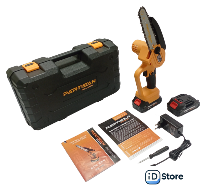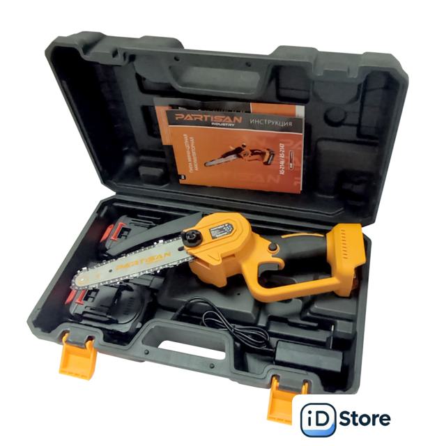Комплект поставки | - пила - 1шт, - цепь - 1шт; - пильная шина - 1шт, - аккумулятор - 2шт, - зарядное устройство - 1шт, - пластиковый кейс - 1шт, - инструкция - 1шт, - гарантийный талон - 1шт. |