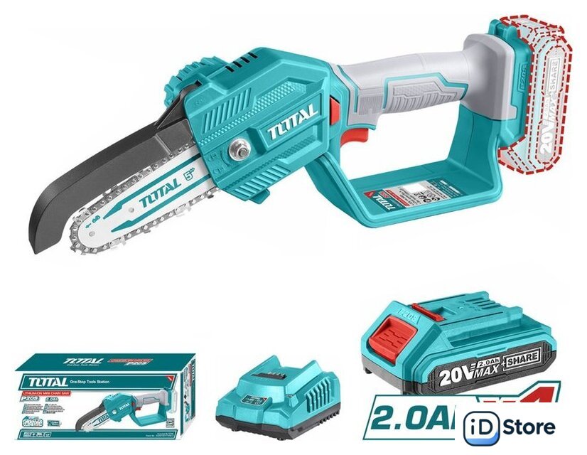 Комплект поставки | Пила цепная аккумуляторная - 1 шт.Шина - 1 шт.Цепь - 1 шт.Аккумулятор 2,0 Ач - 1 шт.Зарядное устройство - 1 шт. |