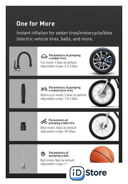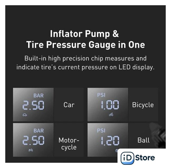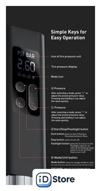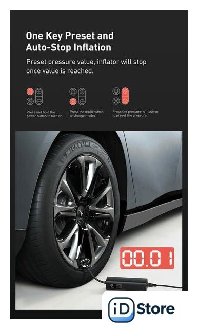 Функциональные особенности | автоотключение при достижении заданного давления, автоматическое определение давления |