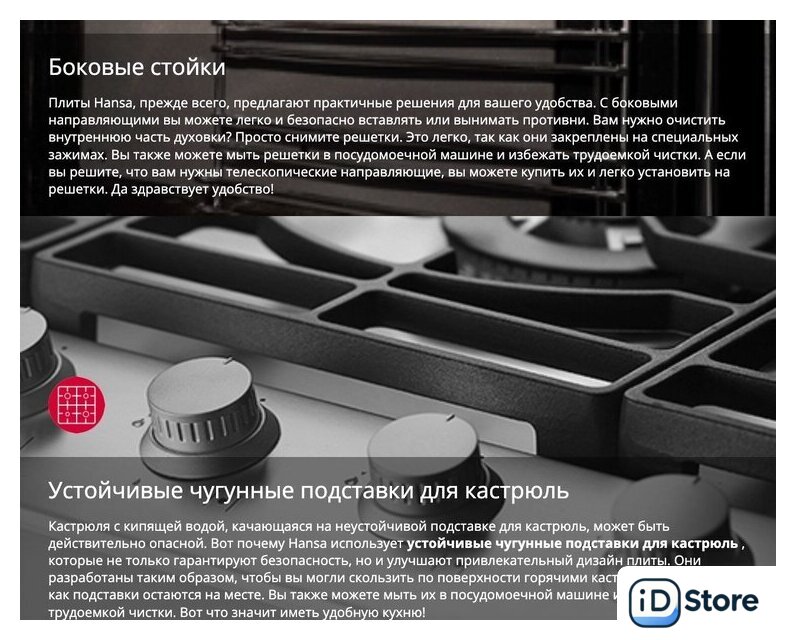 | Чугунные конфорки | нет |