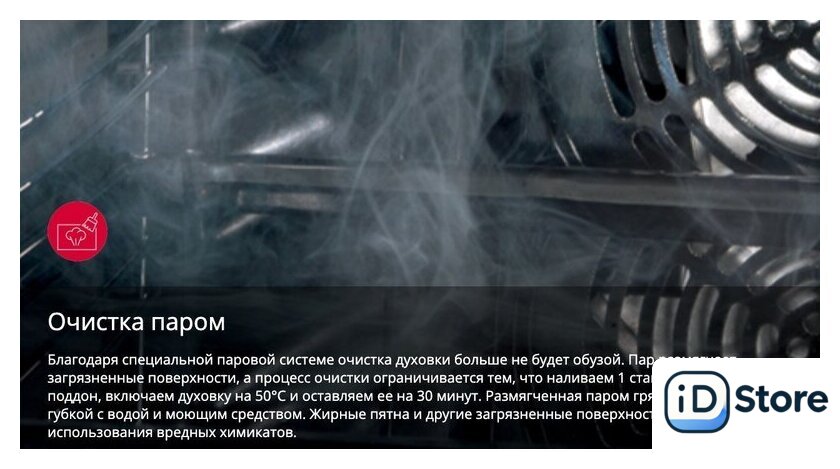 | Очистка духового шкафа | паровая |