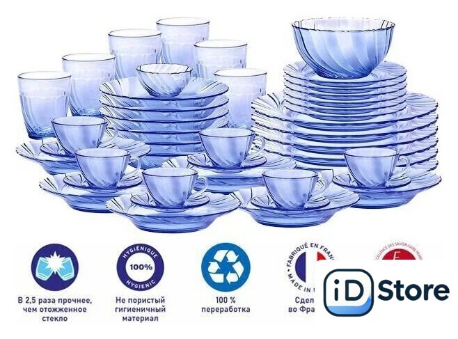 | Состав набора | блюдце, салатник, стакан, тарелка десертная, тарелка обеденная, тарелка суповая, чашка |