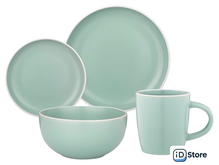 Состав набора посуды | десертная тарелка, кружка, обеденная тарелка, салатник маленький |