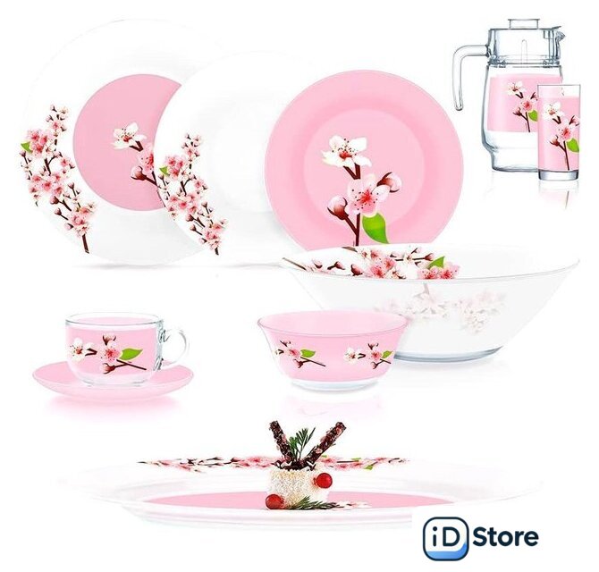 | Состав набора | блюдо (1 шт.), блюдце (6 шт.), графин (1 шт.), крышка (1 шт.), салатник (7 шт.), стакан (6 шт.), тарелка закусочная (десертная) (6 шт.), тарелка столовая глубокая (6 шт.), чашка (6 шт.), тарелка подставная (6 шт.) |