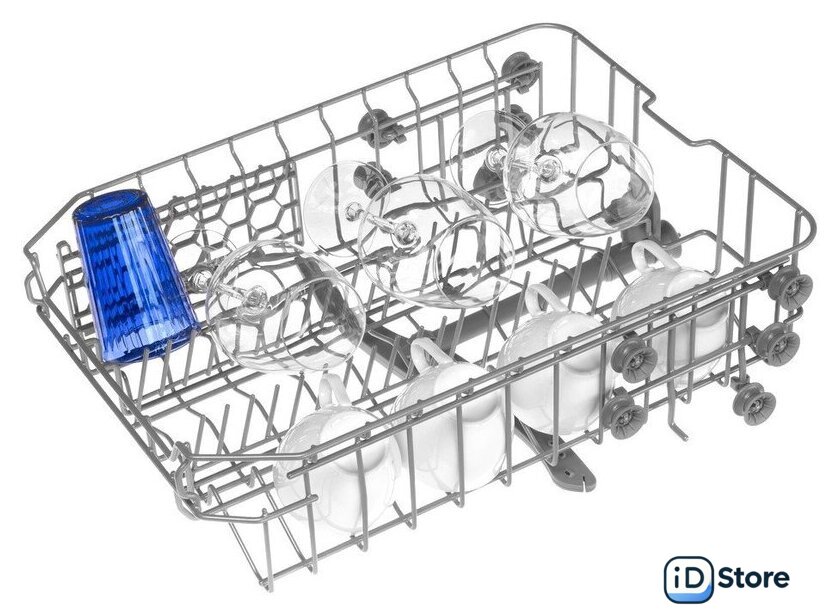 Особенности верхней корзины | регулировка положения по высоте, держатели для бокалов |