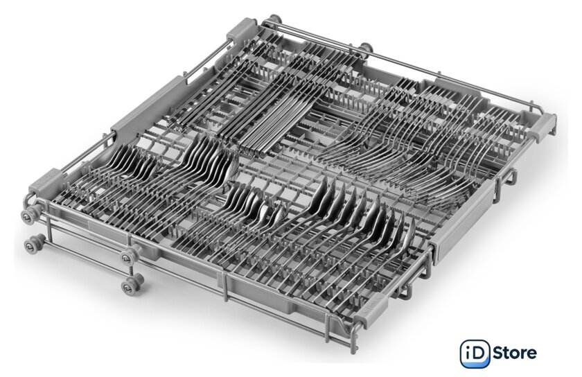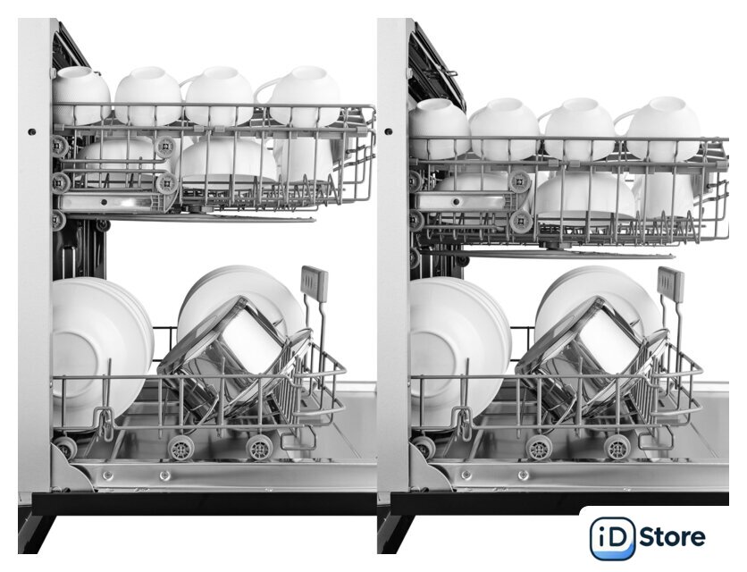 Особенности верхней корзины | регулировка положения по высоте, резиновые держатели для бокалов |
