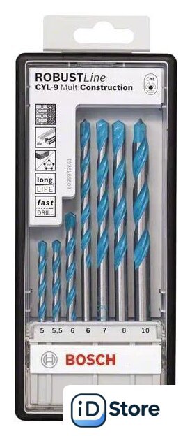 | Комплектация | Набор из 7 сверл CYL-9 MultiConstruction: 5,0 / 5,5 / 6,0 / 6,0 / 7,0 / 8,0 / 10,0 мм |