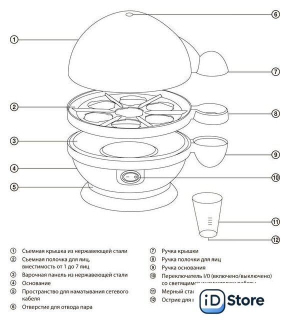 | Вместимость | 7 яиц |