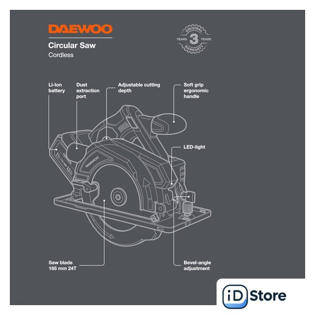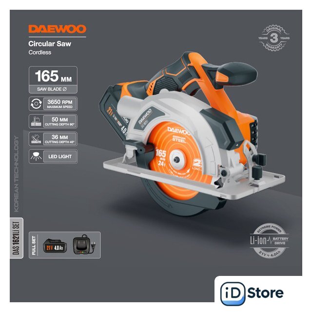Комплектация | - Циркулярная пила - 1 шт.- Зарядное устройство - 1 шт.- Аккумулятор 4,0 Ач - 1 шт.- Пильный диск - 1 шт.- Шестигранный ключ - 1 шт.- Параллельная направляющая - 1 шт.- Руководство по эксплуатации- Коробка |