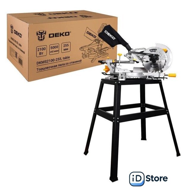 Комплектация | - Торцовочная пила - 1 шт.- Диск пильный - 1 шт.- Струбцина - 1 шт.- Удлинитель стола - 2 шт.- Пылесборник - 1 шт.- Шестигранный ключ - 1 шт.- Угольные щетки - 2 шт.- Станина – (металлическая панель – 16 шт, резиновая опора – 4 шт, винт – 28 шт, гайка – 28 шт, уплотнительные кольца – 4 шт, коробка – 1 шт) - 1 шт.- Руководство по эксплуатации- Коробка |