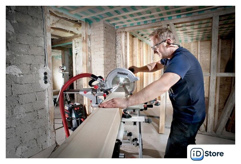 Комплектация | Твердосплавное пильное полотно (48 зубьев)второе твердосплавное пильное полотно2 встроенных расширения столаТорцовочный упорЗажим для материалаИнструмент для смены пильного дискаНамотка кабеляМешок для сбора опилок |