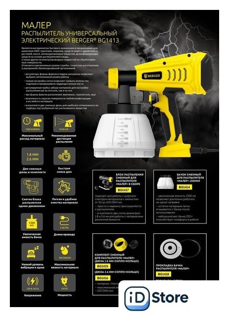 | Комплект поставки | - Краскопульт- Бачок- Чашечный вискозиметр для измерения вязкости материала- Сопло диаметром 1.8 мм- Сопло диаметром 2.6 мм- Сетевой провод 5 м |