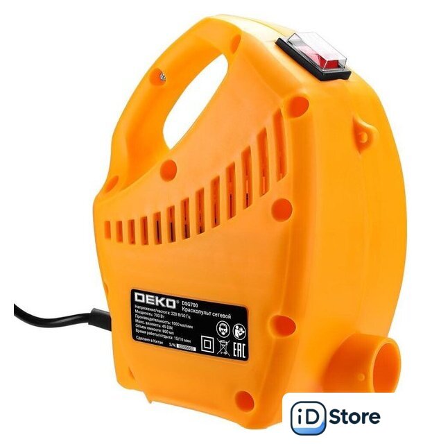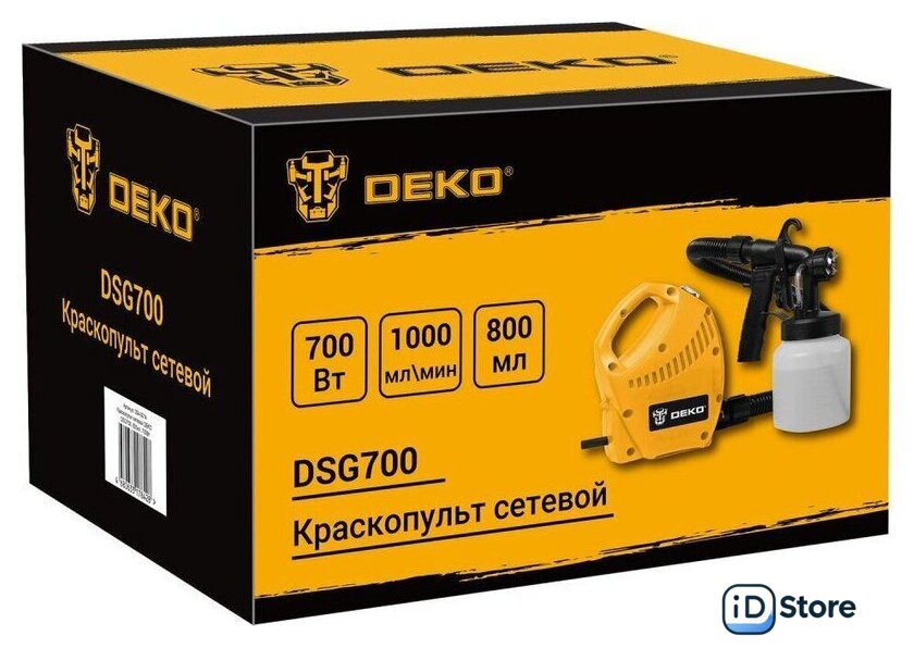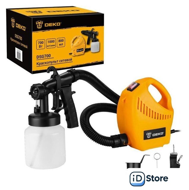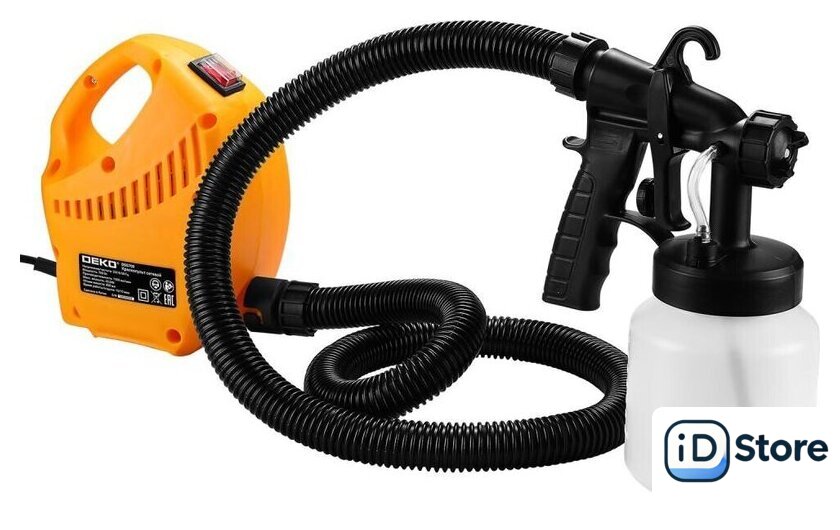 Комплект поставки | - Корпус краскопульта – 1 шт.- Пистолет-распылитель – 1 шт.- Шланг гофрированный – 1 шт.- Бачок для краски – 1 шт.- Ремень для переноски – 1 шт.- Стакан для измерения вязкости материала – 1 шт.- Игла для прочистки сопла – 1 шт.- Руководство по эксплуатации- Коробка |