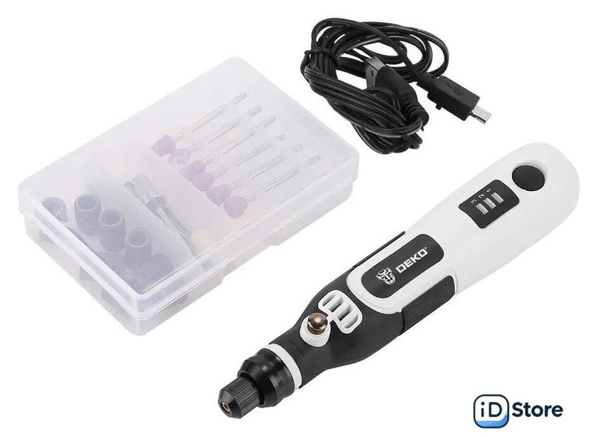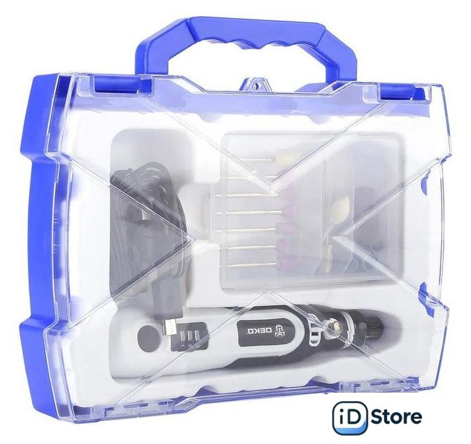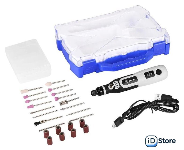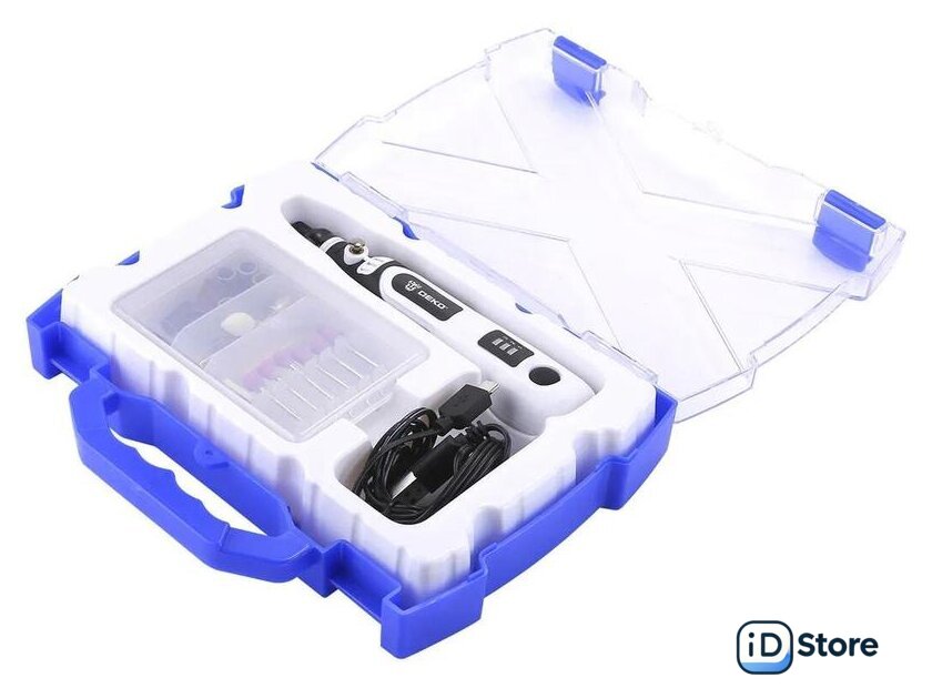 Комплектация | Гравер аккумуляторный - 1 шт.Шлифовальный круг с хвостовиком (2.3мм) - 6 штАлмазные биты (2.3мм) - 6 штШерстяной полировальный круг (2.3мм) - 2 штХвостовик (2.3мм) - 1 штНейлоновая щетка (2.3мм) - 1 штШлифовальный цилиндр (2.3мм) - 8 штUSB-кабель - 1 шт.ИнструкцияКейс |