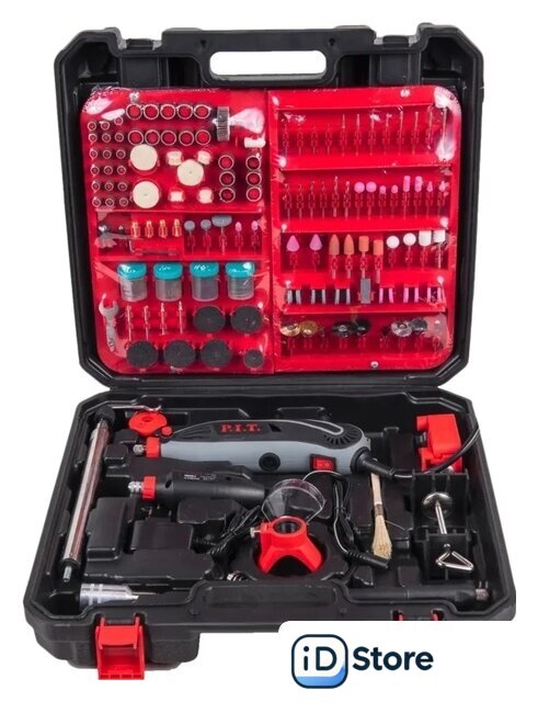 | Комплектация | - Гравер 150 Вт- Бормашина 12 вольт- Адаптер 12 вольт- Комплект из 350 принадлежностей- Кисть для удаления стружки- Цанги- Подсветка на диодах- Телескопический штатив- Гибкий вал- Пластиковый кейс |