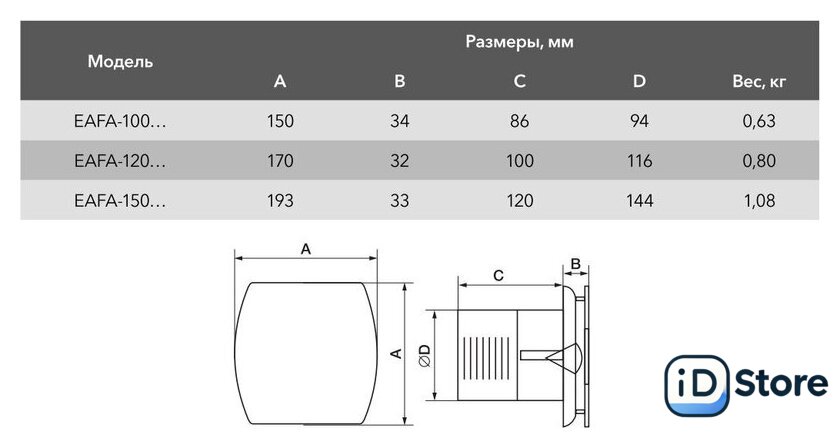 | Установочный диаметр воздуховода | 15 см |