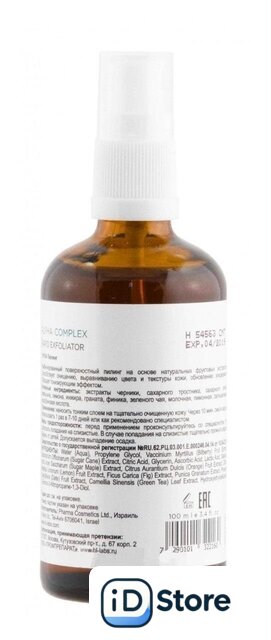 | Активные ингредиенты | апельсин, аскорбиновая кислота (витамин C), клен, лимон, молочная кислота, ромашка, салициловая кислота, финики, чай, черника, тростниковый сахар |