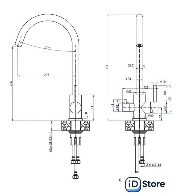 | Поворотный излив | 360 ° |