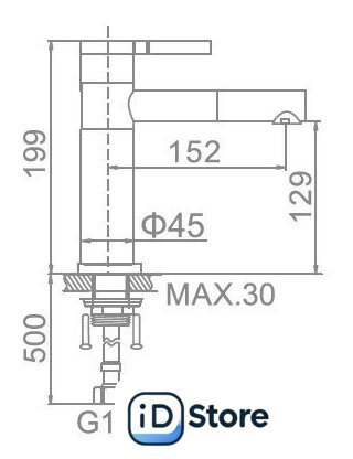 | Длина (вылет) излива | 152 мм |
