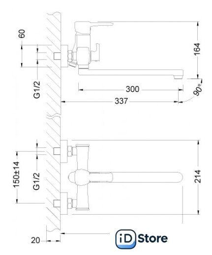 | Длина (вылет) излива | 337 мм |