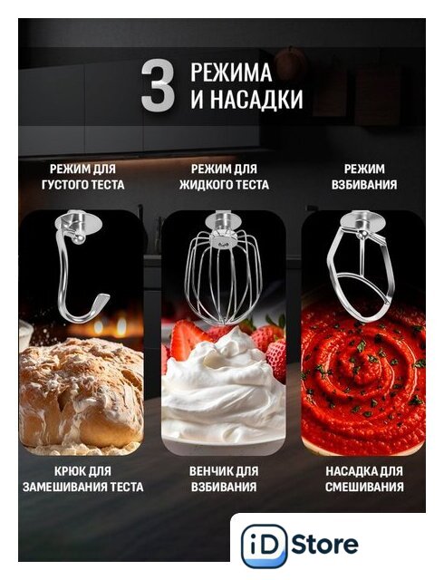 | Функции | взбивание, смешивание, замешивание дрожжевого теста |