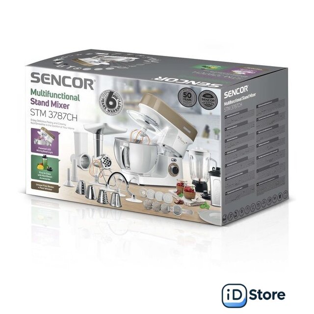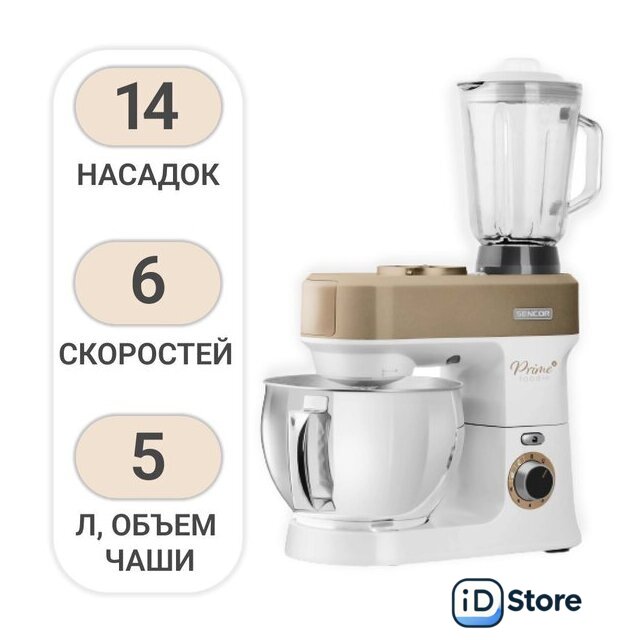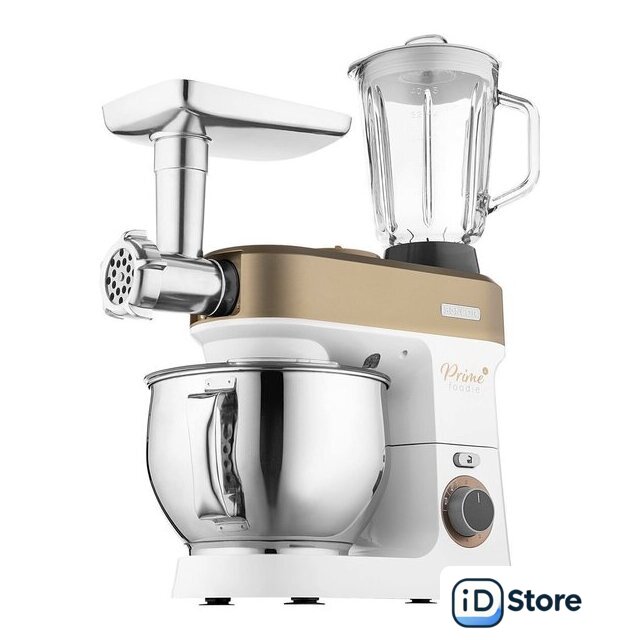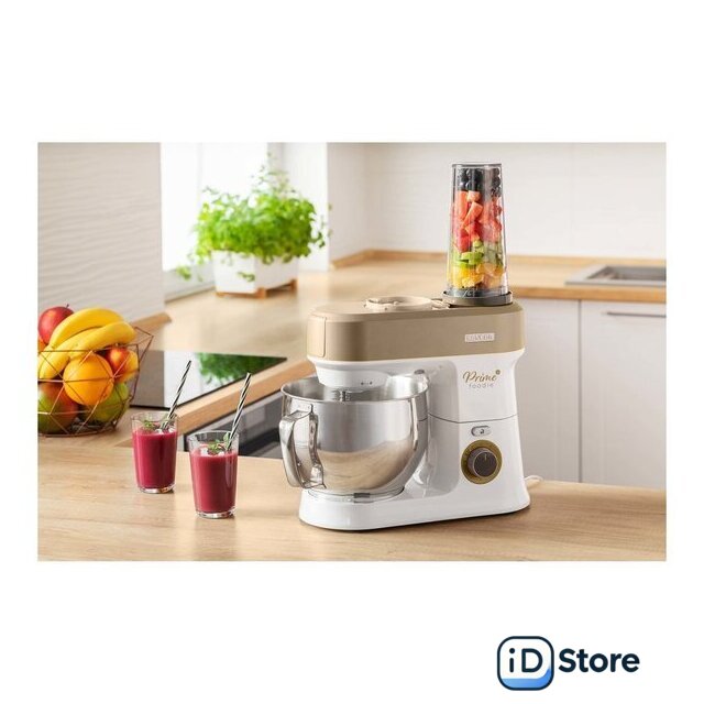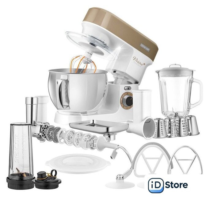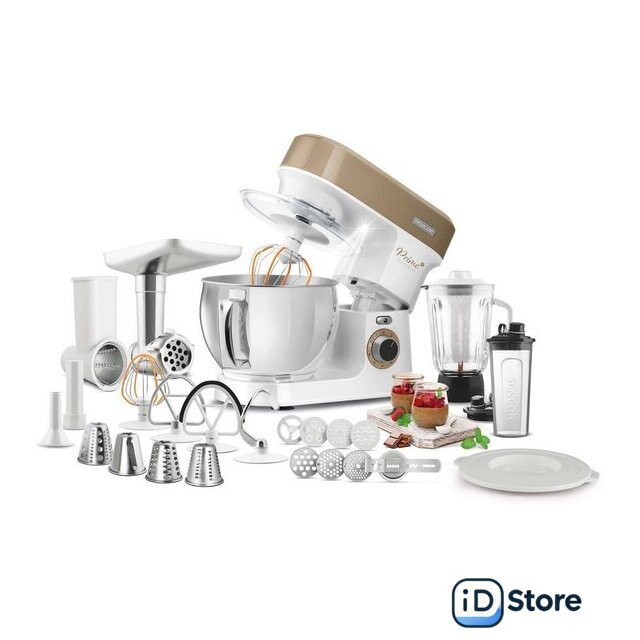 Полная комплектация | Стеклянная чаша блендера 1,5лЧаша миксера 5лДве насадки для смешиванияНасадка для тестаВенчикМясорубка с насадками для регулировки степени измельчения, набивки колбас, изготовления пасты и насадкой-шаблоном для формовки печеньяТолкательОвощерезка с 4 терками (мелкая терка, крупная терка, измельчение, нарезка ломтиками)Миксер для смузи 0,6л с крышкой для использования в качестве дорожной бутылки |