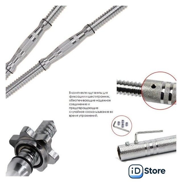Комплектация | - Гриф гантельный = 2 шт.- Коннектор соединительный = 1 шт.- Замки винтовые = 4 шт. |