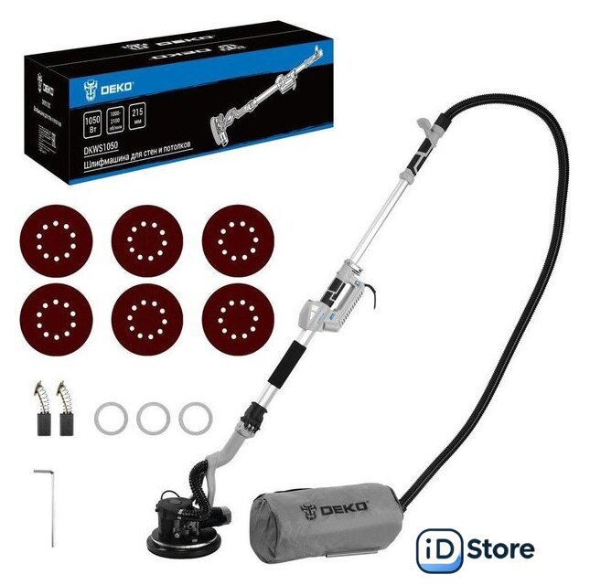 Комплект поставки | - Шлифмашина с нижней штангой - 1шт.- Верхняя штанга - 1шт.- Шланг для отвода пыли - 1 шт.- Соединительный адаптер - 1 шт.- Шестигранный ключ - 1 шт.- Шлифовальных кругов 210 мм: (Р120 2шт., Р180 х 2шт., Р240 х 2шт.) - 6 шт.- Мешок для пыли - 1 шт.- Проставочные кольца - 3 шт.- Угольные щетки - 2 шт.- Руководство по эксплуатации- Коробка |