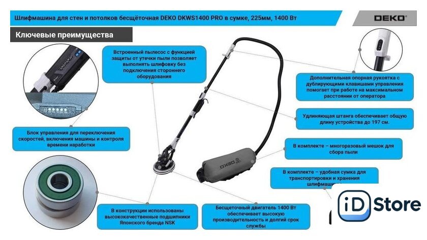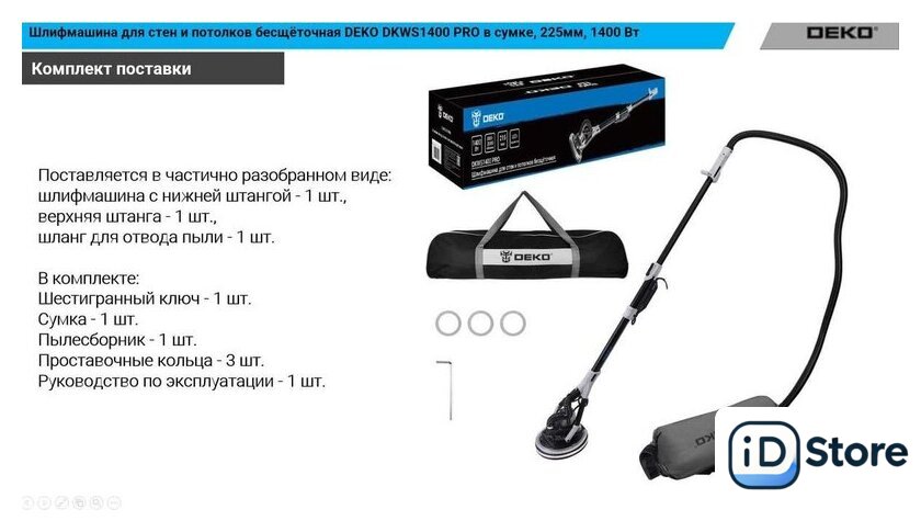Комплект поставки | - Шестигранный ключ - 1 шт- Сумка для хранения и транспортировки - 1 шт- Пылесборник - 1 шт- Проставочные кольца - 3 шт- Руководство по эксплуатации - 1 шт |