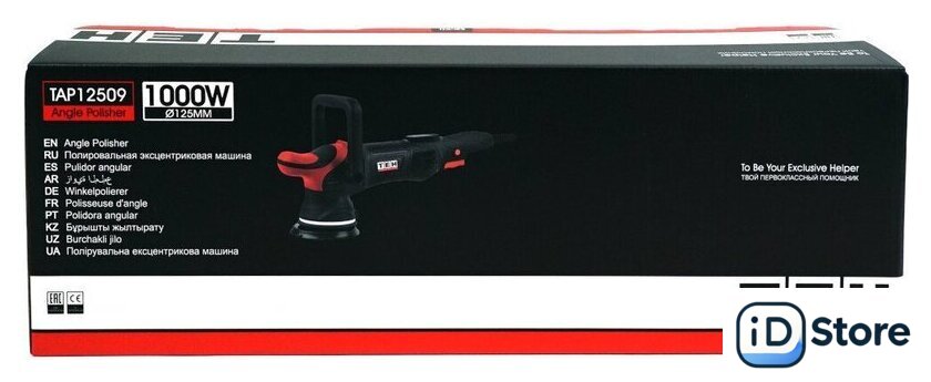 | Комплект поставки | Полировальная эксцентриковая машина;, - Дополнительная боковая рукоятка;, - Дополнительная D-образная рукоятка;, - Опорная тарелка;, - Полировальная насадка;, - Ключ HEX;, - Набор крепежа;, - Комплект угольных щеток;, - Руководство по эксплуатации;, - Упаковка (картонная коробка). |