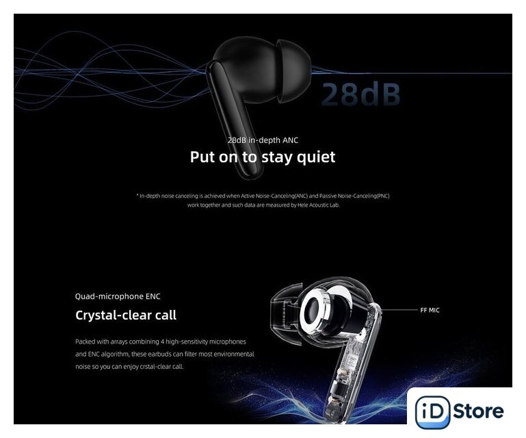 Метки | беспроводные, с микрофоном (гарнитура), вкладыши TWS, с активным шумоподавлением, для смартфона, с влагозащитой |