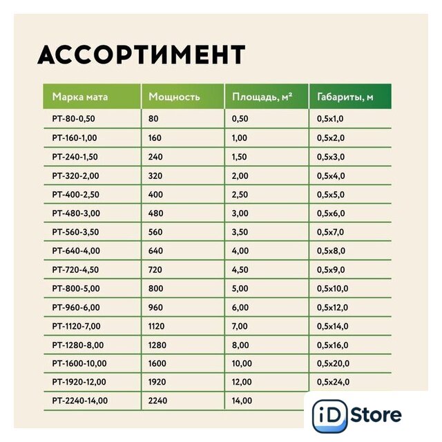 | Тип | нагревательный мат |