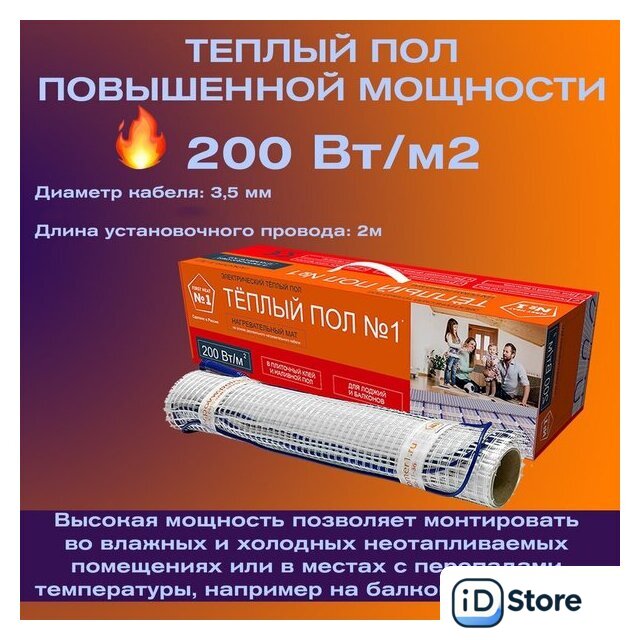 | Удельная мощность мата | 160 Вт/кв.м |