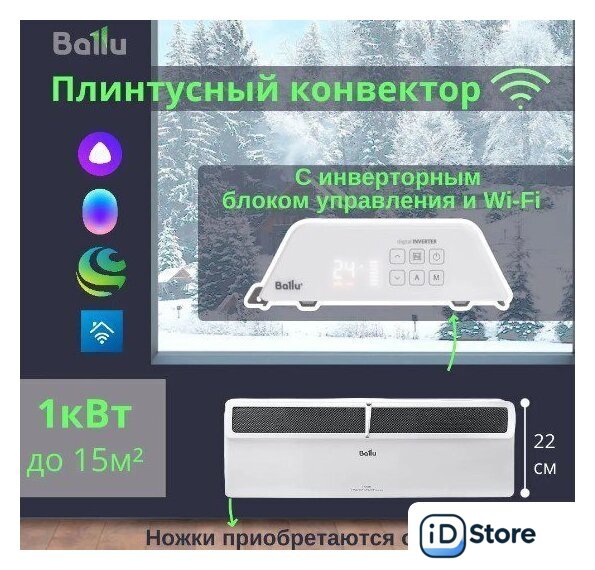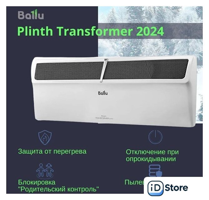 | Комплектация | Отопительный модуль конвектора Ballu Plinth Transformer BEC/PL-1000 НС-1609708; Термостат для климатической техники Ballu Transformer Digital Inverter Wi-Fi BCT/EVU-4I |