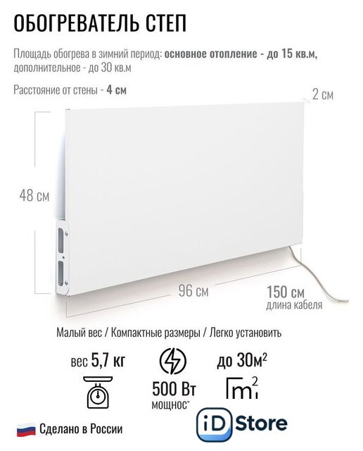 | Площадь обогрева | 12 м2 |