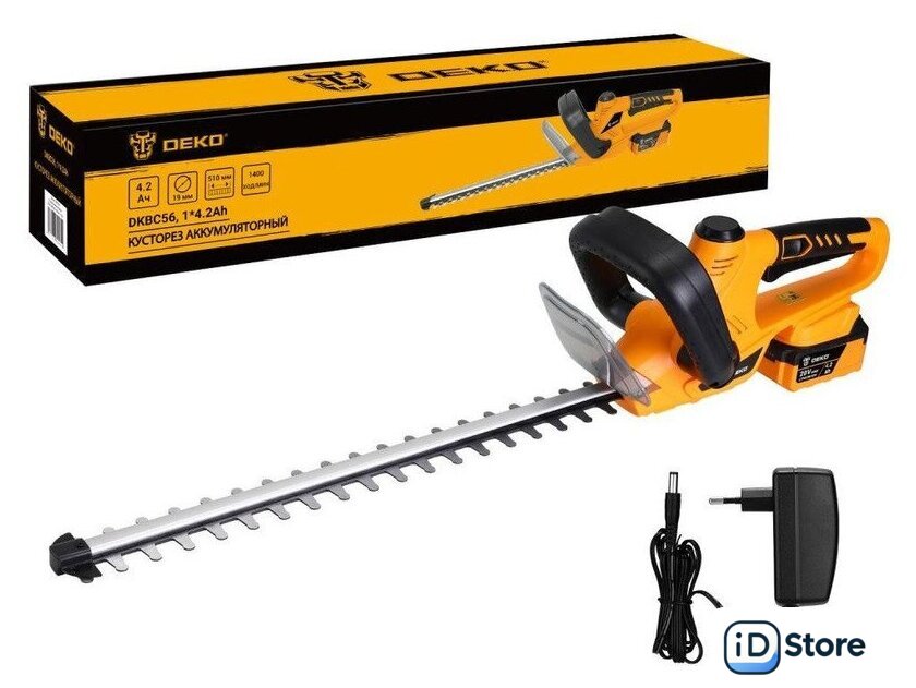 Комплектация | - Кусторез - 1 шт.- Чехол для лезвия - 1 шт.- Аккумулятор 4,2 Ач - 1 шт.- Зарядное устройство - 1 шт.- Руководство по эксплуатации- Коробка |